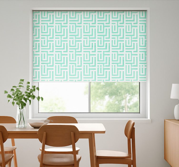 Store salle à manger effet carrés géométriques bleus