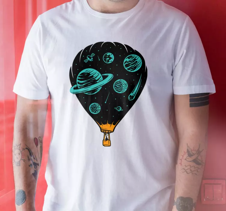Référence: T5406Ce design captivant présente une montgolfière remplie de magnifiques corps célestes. Des planètes et des astéroïdes illustrés avec éclat créent un sentiment d'aventure cosmique, séduisant les rêveurs et les explorateurs. Parfait pour ceux qui aiment les merveilles de l'univers.