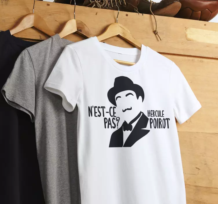 Grande idée cadeau, ce tee-shirt citation personnage Agatha Christie est parfait pour les plus grands fans de romans policiers ! Son motif illustrant le portrait d'Hercule Poirot indique son nom et une de ses fameuses expressions qui le caractérisent. Rendez hommage à votre personnage préféré de manière unique ! Un article agréable à porter, dont l'impression de qualité supérieure est de haute résistance. Nous recommandons de le laver et le repasser à l'envers afin de pouvoir en profiter le plus longtemps possible. Sélectionnez la taille et la couleur de votre choix pour le vêtement et le motif. Passez votre commande en ligne et recevez votre tee-shirt phrase Hercule Poirot !