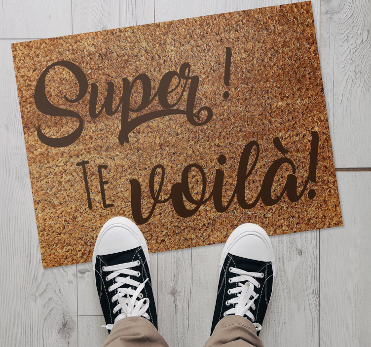Tapis vinyle entrée phrase "Super ! Te voilà !"