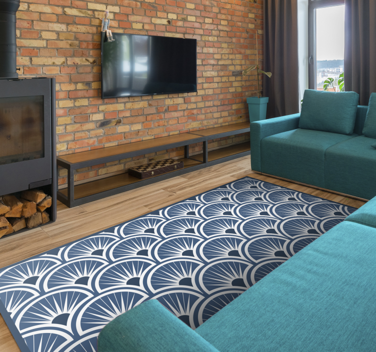 Tapis vinyle ultra moderne Art Déco motif bleu et blanc