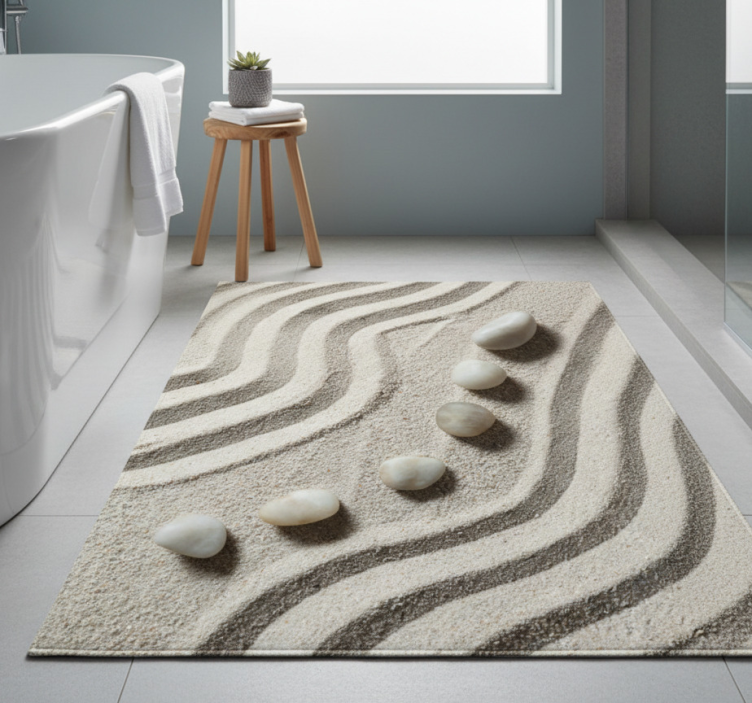Tapis vinyle salle de bain chemin zen sable