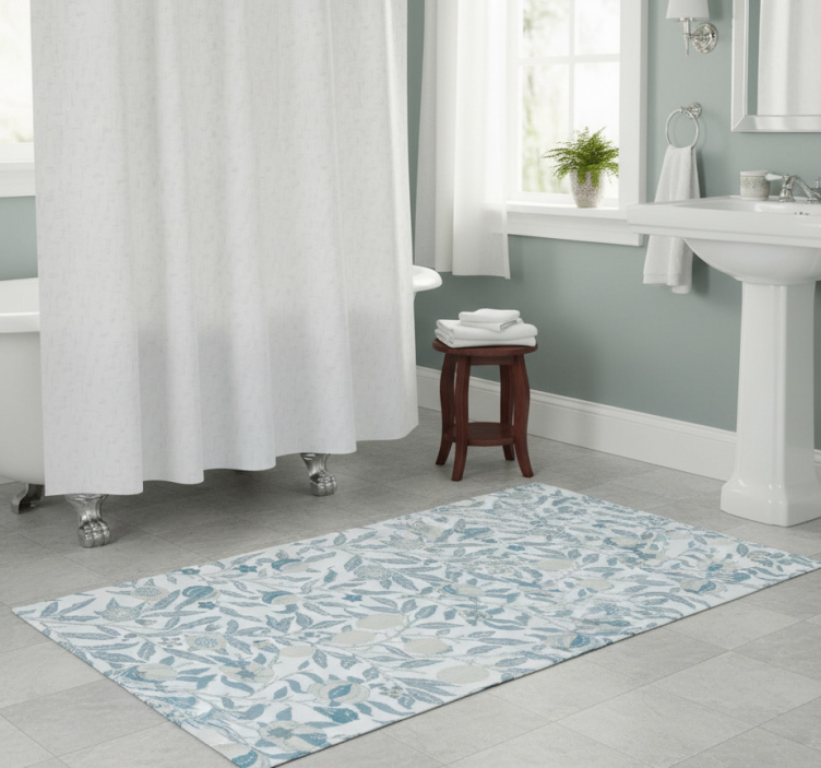 Tapis vinyle salle de bain fleurs bleues style victorien