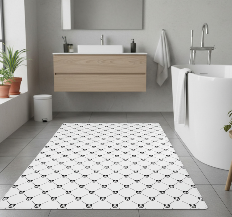 Tapis vinyle salle de bain motif géométrique noir et blanc