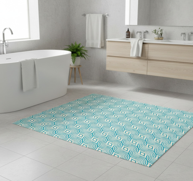 Référence: R23331Apportez une touche marine à votre salle de bain avec le Tapis vinyle salle de bain motif marin lignes bleues. Son design évoque des vagues apaisantes et un esprit nautique, créant une atmosphère relaxante et accueillante. Avec ses lignes bleues élégantes, ce tapis est à la fois moderne et intemporel, parfait pour sublimer votre espace tout en ajoutant une note de fraîcheur.